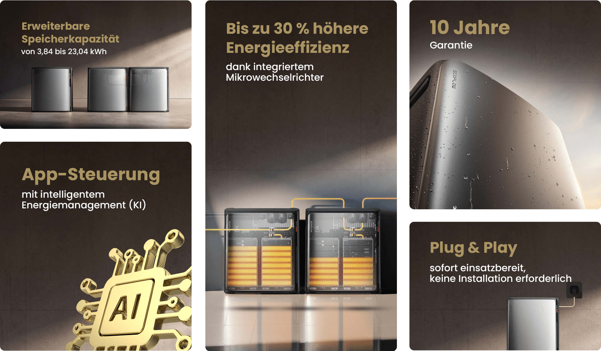 Die integrierte Speicherkapazität von 3,84 kWh bildet eine solide Grundlage für den täglichen Gebrauch. Erzeugte Energie nutzen Sie genau dann, wenn Ihr Haushalt sie benötigt, zum Beispiel am Abend oder bei geringerer Sonneneinstrahlung. Wenn mehr Speicher benötigt wird, lässt sich das System auf bis zu 23 kWh erweitern, sodass es mit Ihrem Energieverbrauch und der erzeugten Solarenergie mitwächst.